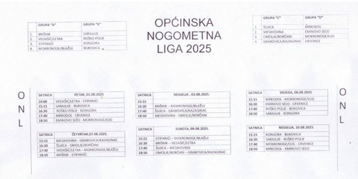 U petak, 1. kolovoza počinje ovogodišnja Općinska nogometna liga a sudjeluje 16 ekipa raspoređenih u 4 skupine.